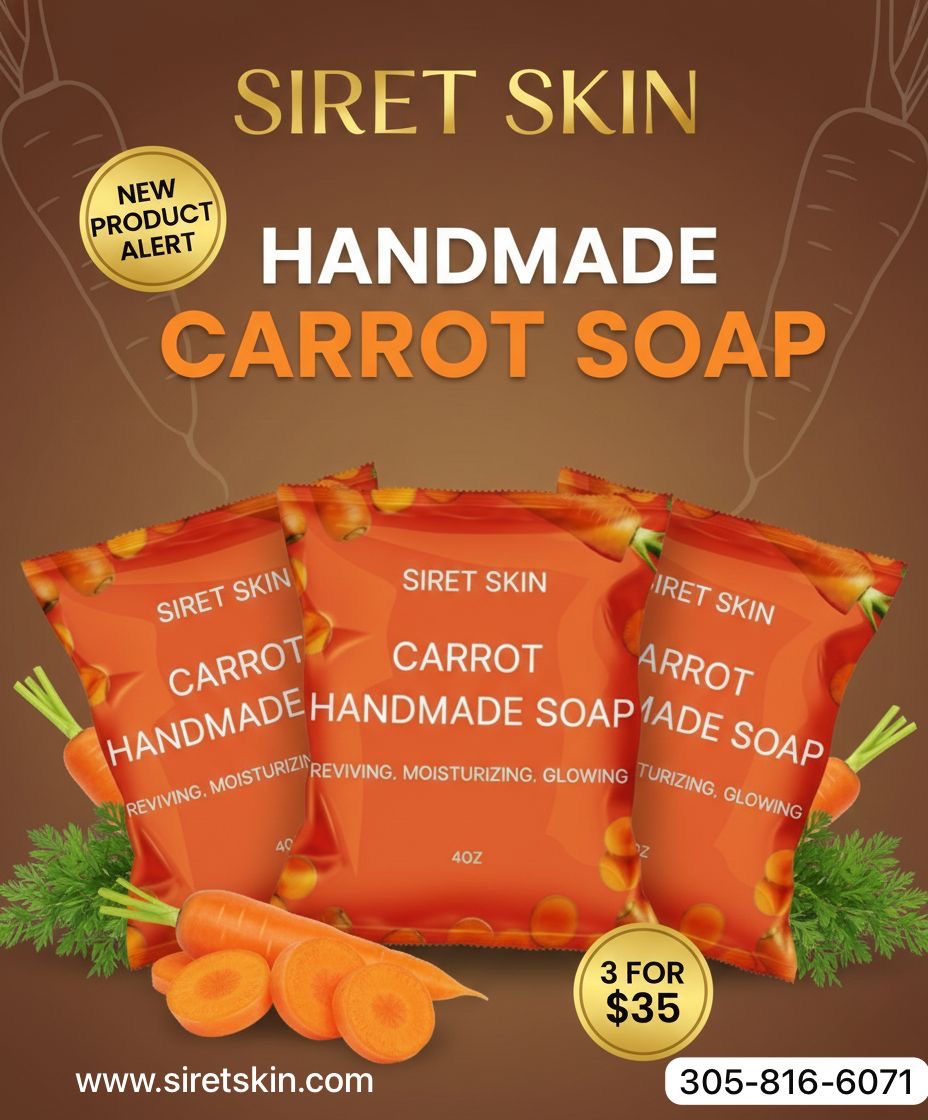 Siret Skin Carrot Handmade Soap is a gentle cleansing bar designed to cleanse and moisturize the skin while leaving it feeling soft and refreshed. Formulated with carrot extract, this handmade soap helps support a healthy-looking glow and smooth skin texture.