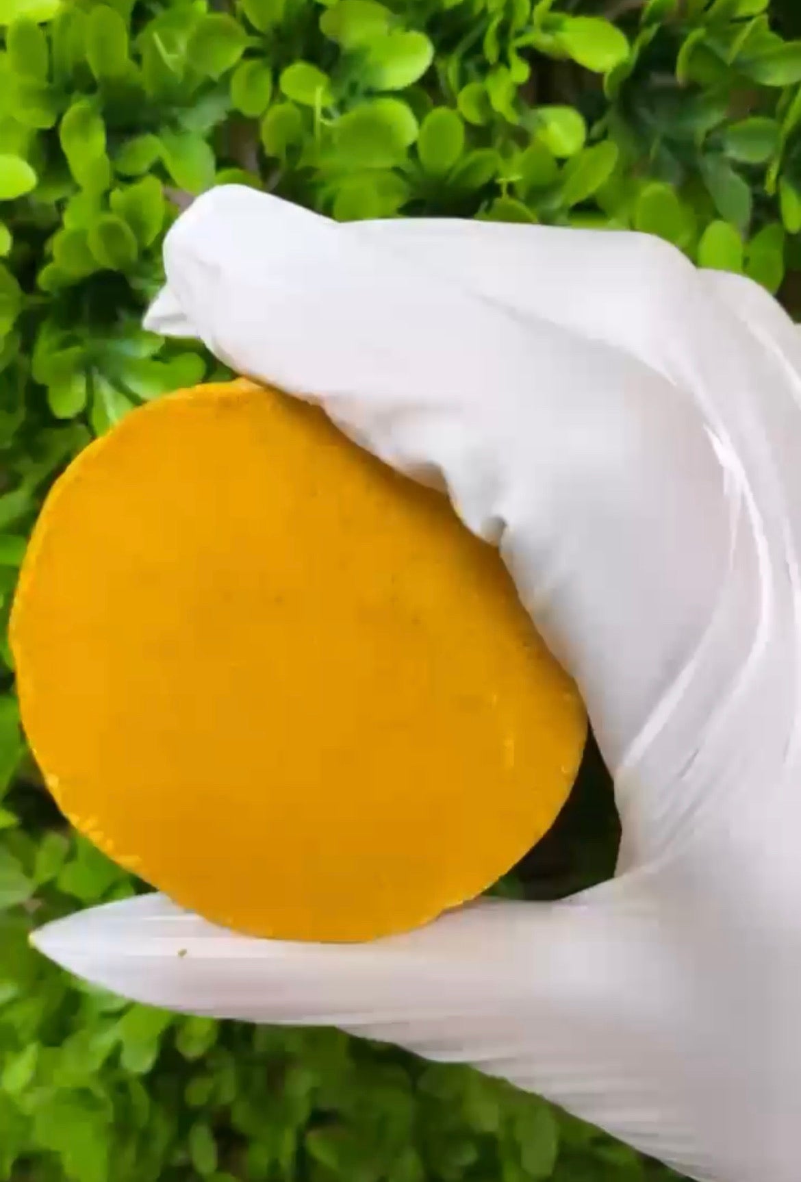 Goat Milk, coconut oil, palm oil, safflower oil, glycerin (kosher, of vegetable origin), shea butter, purified water, sodium hydroxide (saponification agent), sorbitol, propylene glycol (made from vegetable glycerin), sorbitan oleate (emulsifier), oat protein (conditioner), titanium dioxide (mineral whitener used in opaque soaps), tumeric root powder, orange essential oil.